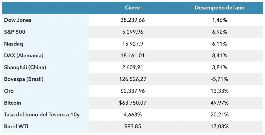 El Nasdaq, que agrupa las empresas del sector de tecnología subió un +2,03% para cerrar en 15.927,90 y registrar su mejor desempeño diario desde febrero. El promedio industrial Dow Jones subió 153,86 puntos, o un +0,4%, para terminar en 38.239,66.